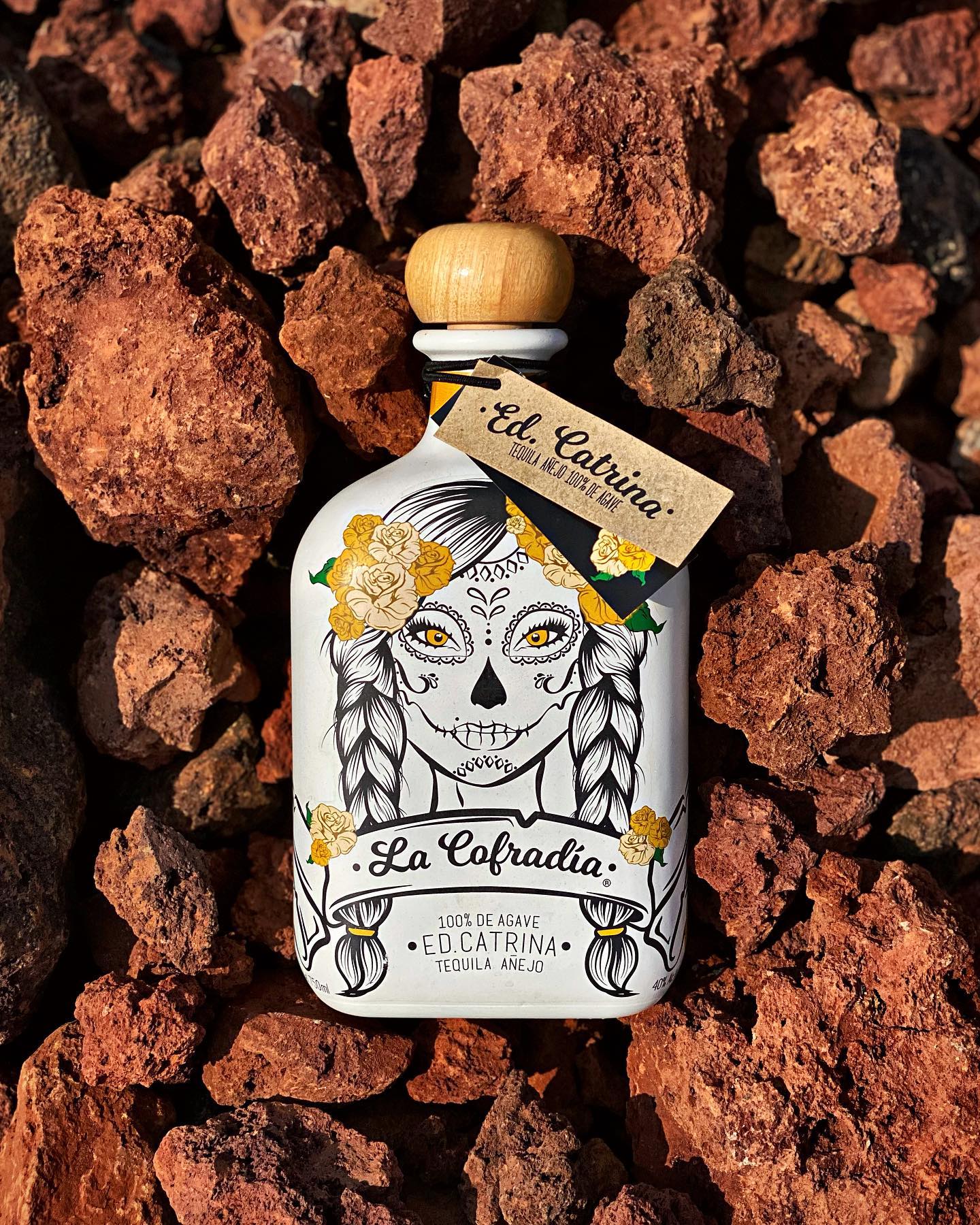 Catrina es una edición especial de Tequila La Cofradía inspirada en uno de los símbolos más representativos de la tradición mexicana, vinculado al Día de los Muertos. La botella, de cerámica hecha a mano, presenta la icónica figura de la Catrina, un esqueleto femenino adornado con flores, convirtiendo cada pieza en un objeto único.