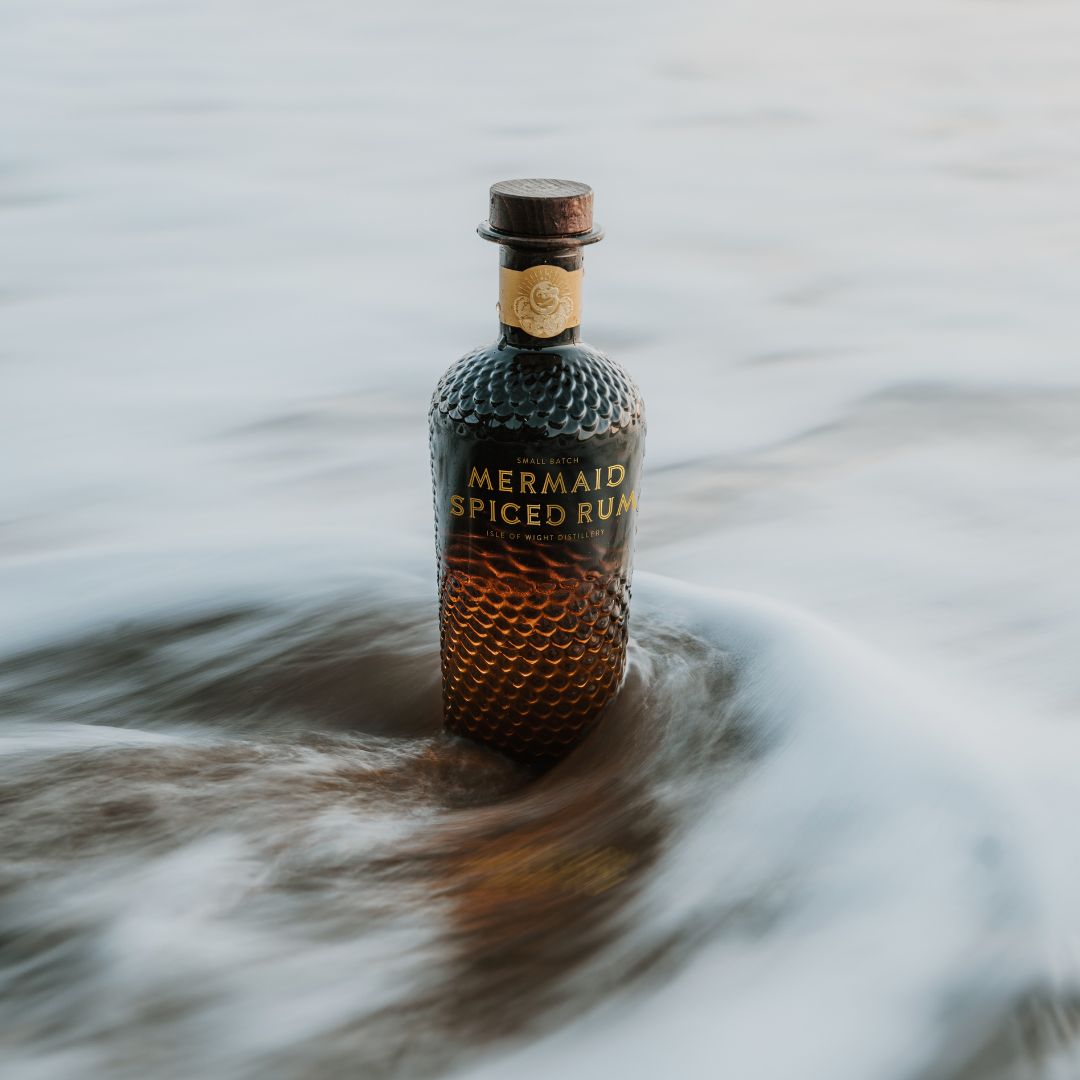 Mermaid Spiced Rum está elaborado a partir de una mezcla cuidadosamente seleccionada de ron de caña de azúcar destilado en alambiques de columna y envejecido entre 2 y 5 años en barricas de roble ex bourbon y melaza de Trinidad y de República Dominicana. Ambas mezclas isleñas navegan desde el Caribe hasta las costas de la isla de Wight, para acabar combinándose con frutas y especias locales.