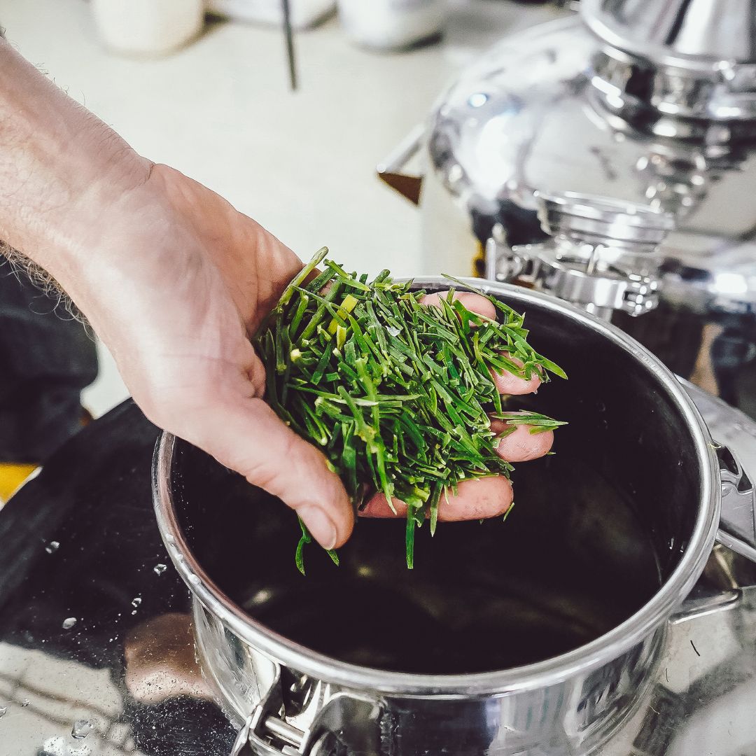 Entre sus botánicos hay tres que se recolectan localmente: hinojo marino, flor de sauco y lúpulo. El resto provienen de familias de agricultores de todo el mundo.