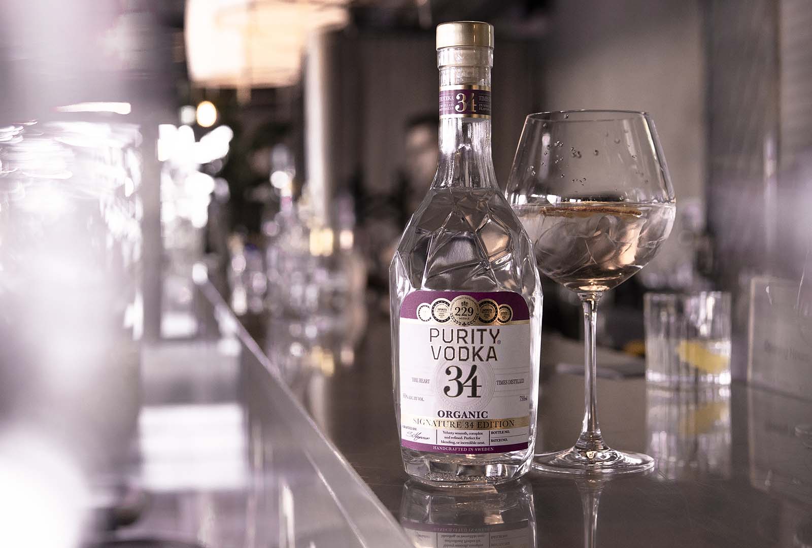 Purity Organic Vodka Signature 34 es la receta de vodka original, con una década dedicada a refinar la cantidad de destilaciones requeridas por el maestro destilador, Stefan Magnusson, para crear este extraordinario destilado.