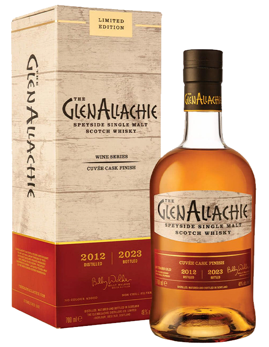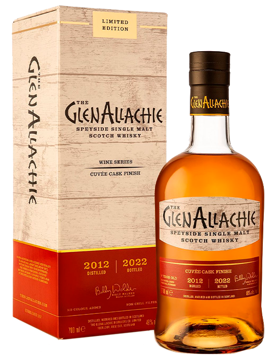 Para la elaboración de las ediciones limitadas de “wine series” de GlenAllachie, en primer lugar se madura de forma experta el whisky en barriles de roble blanco americano ex-Bourbon. Después, el whisky se somete a una maduración adicional en la que Billy agregó un toque distintivo al combinar cuatro acabados de barrica de vino excepcionales de vino Cuvée. Este whisky Cuvée de 9 años es una unión de bebidas espirituosas de varias barricas de vino fino provenientes de las regiones de renombre mundial de Burdeos, Languedoc y Valpolicella.